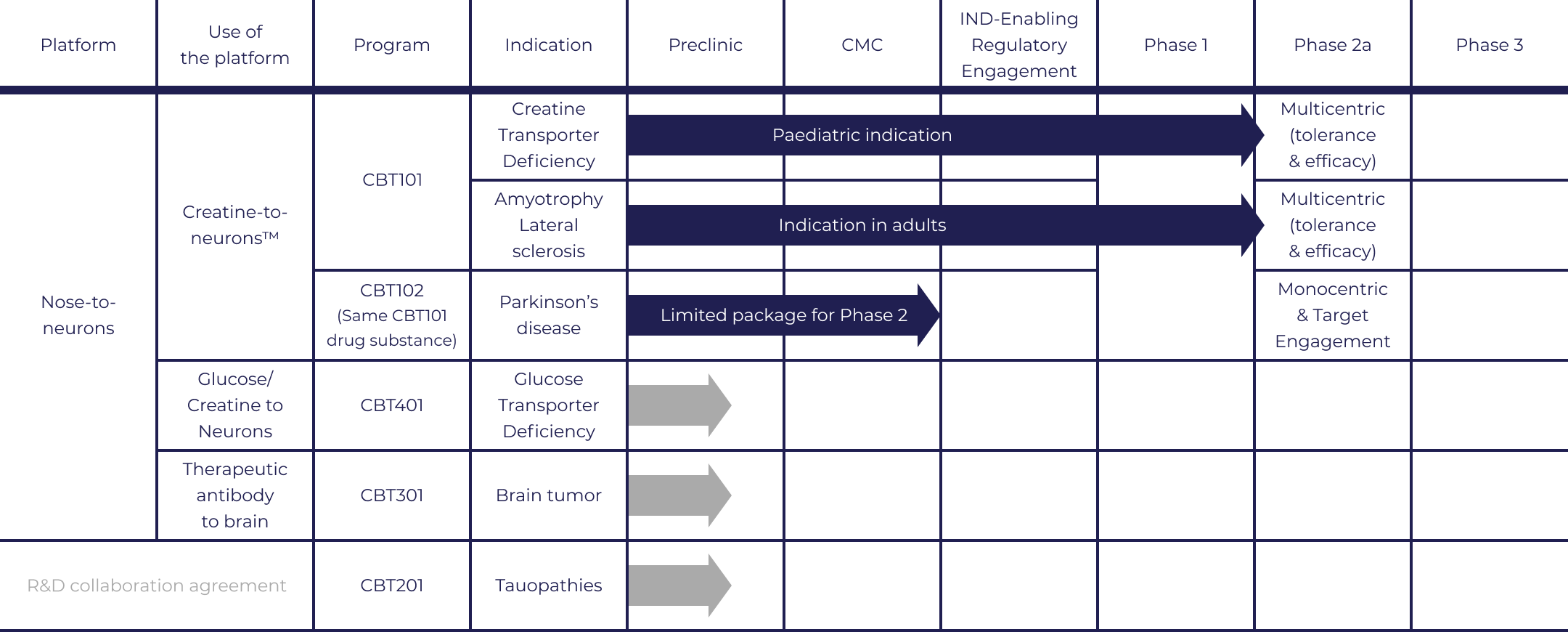 This collaborative approach ensures a comprehensive and holistic focus on symptoms. Occupational, speech, and physical therapists may be necessary to improve developmental disabilities, and behavior therapy can address behavioral problems. Additionally, in cases of repeated seizures, patients may receive anticonvulsants.CBT101 has demonstrated its efficacy in Creatine Transporter Deficiency through an extensive set of preclinical experiments conducted on patient cells and specific animal models (i.e., SLC6A8 KO mice from two different teams and cynomolgus monkeys).